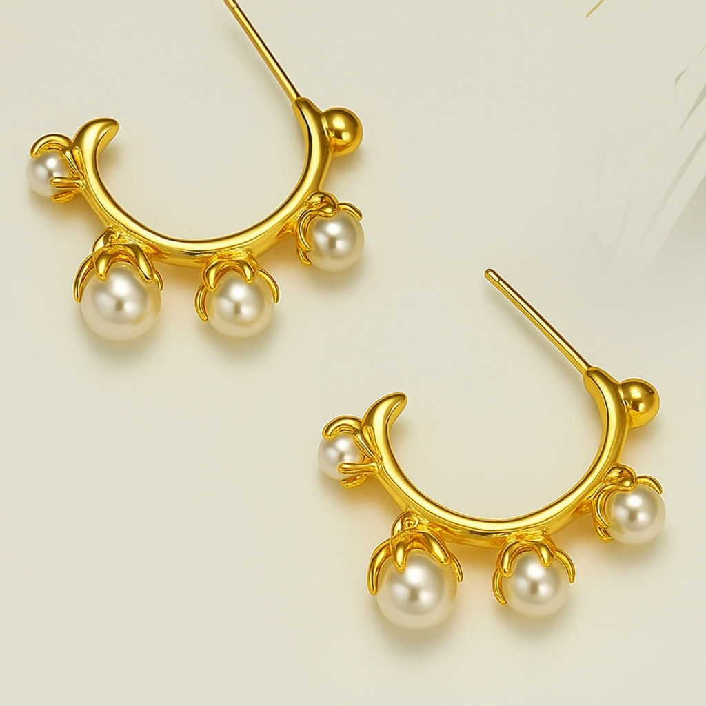 Each earring is slightly different, giving the design a natural, organic feel that feels thoughtful rather than uniform. Suspended pearls bring subtle movement and quiet elegance. Nothing feels overly bold or delicate; they are beautifully made.