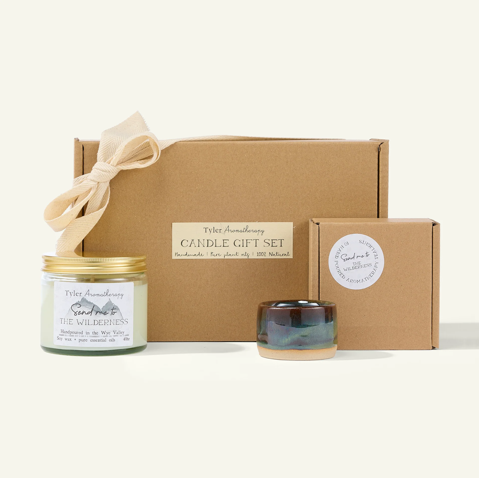 The Wilderness Candle and Tealight Gift Set is an invitation to slow down and step into nature without leaving home. Part of Tyler Aromatherapy’s Escape Collection, this set was created with escapism in mind, capturing the feeling of fresh air, quiet forests, and grounding moments away from the everyday. It includes a full-size 250ml Wilderness candle alongside a handmade ceramic tealight holder and a box of ten matching soy tealights, making it feel both generous and thoughtfully complete.