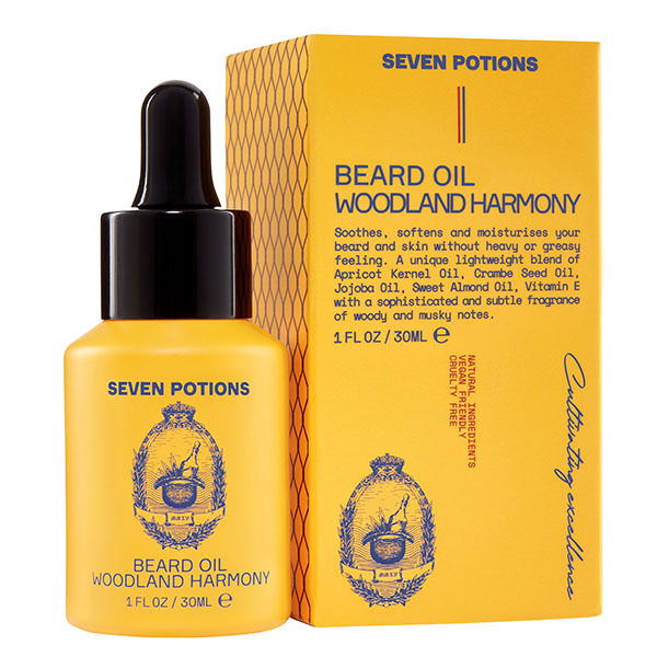 Seven Potions Beard Oil Woodland Harmony is a beautifully balanced grooming essential designed to care for both beard and skin. Made in the UK, the formula is lightweight yet nourishing, helping to soften facial hair while reducing dryness and irritation underneath. It absorbs easily without leaving a greasy residue, making it comfortable to use every day.
